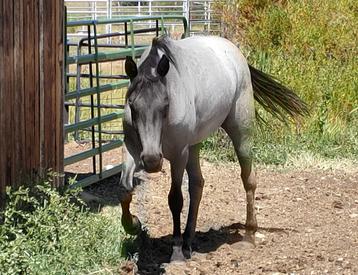 STARLIGHTS ATHENA (Athena) is a homozygous black and homozygous roan mare with foundation bloodlines. Their foal will be either blue roan or bay roan. 15 HH