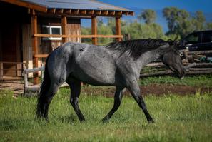This gorgeous blue roan filly is HOMOZYGOUS ROAN by parentage. This foal will have some size and agility. You will be able to take her in multiple directions: Roping, Reined Cow Horse, or Ranching. As a homozygous roan mare, she will always add color (and value) to your broodmare band.